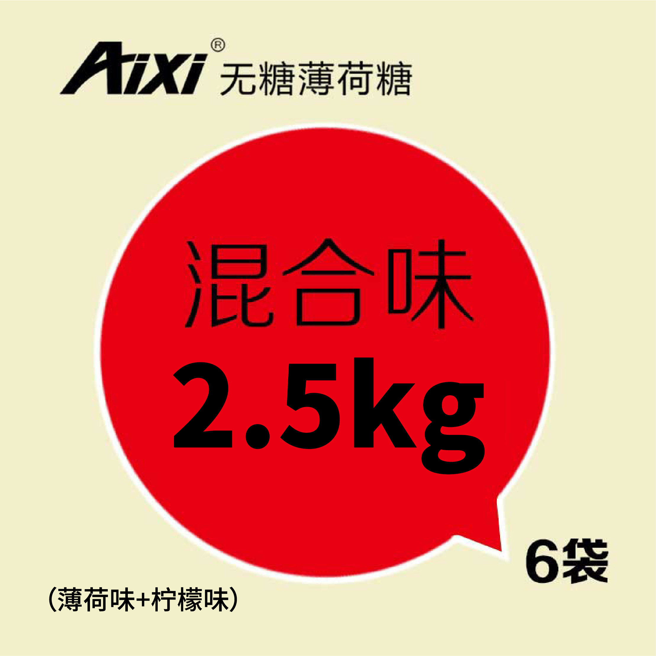 Aixi無(wú)糖薄荷糖(非定制)_檸檬味薄荷味混裝_2.5kg/袋*6
