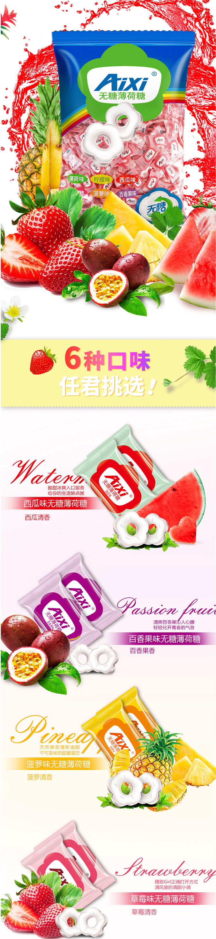 Aixi無糖薄荷糖(非定制)_草莓味_2.5kg/袋*6